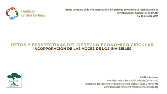 Participación de la Doctora Cristina Cortinas, presidenta de la Fundación Cortinas, en la Mesa 1. Retos y Perspectivas del Derecho Económico Circular, del Primer Congreso Internacional de Derecho Económico Circular, en el Instituto de Investigacione...