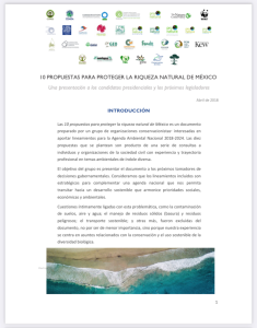 Abril 2018 Diez propuestas para proteger la riqueza natural de México32 organizaciones de la sociedad civil que luchan por proteger y preservar la biodiversidad, la flora y la fauna, los hábitats silvestres, los ecosistemas terrestres, hídricos y marinos, el derecho humano a un medio ambiente sano libre de contaminantes y pueda mantener su integridad funcional y evolutiva, presentan esta propuesta al gobierno federal. |